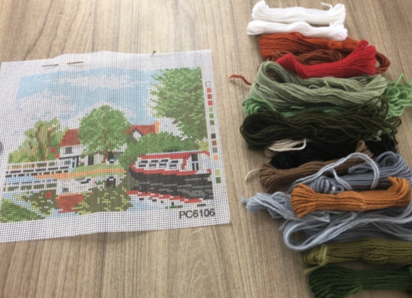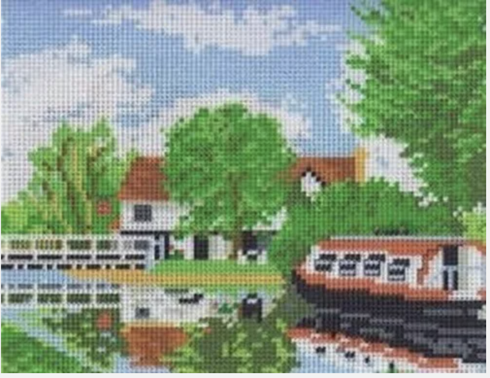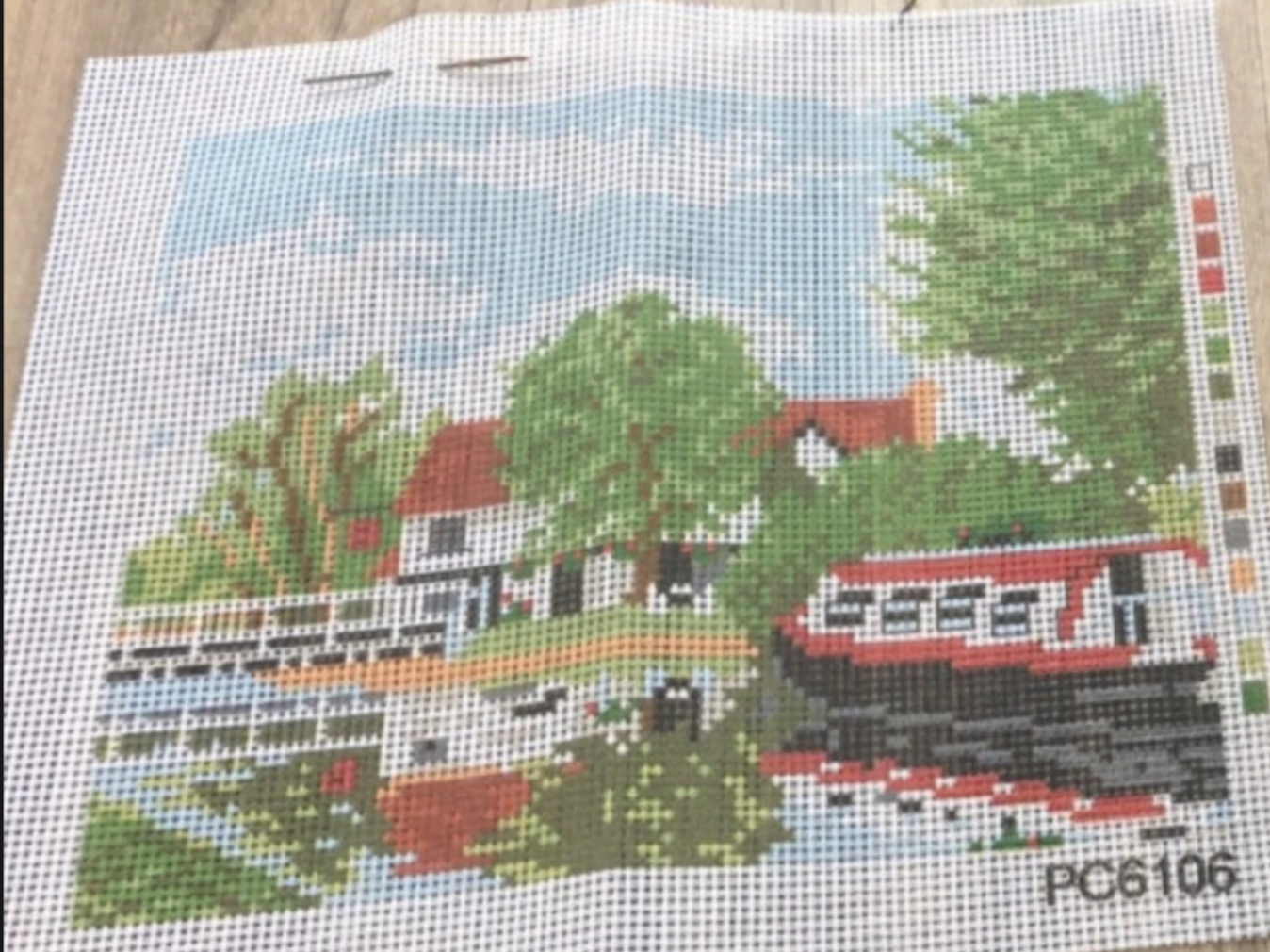 This is a lovely Tapestry Kit of a Barge approaching a lock.