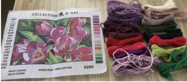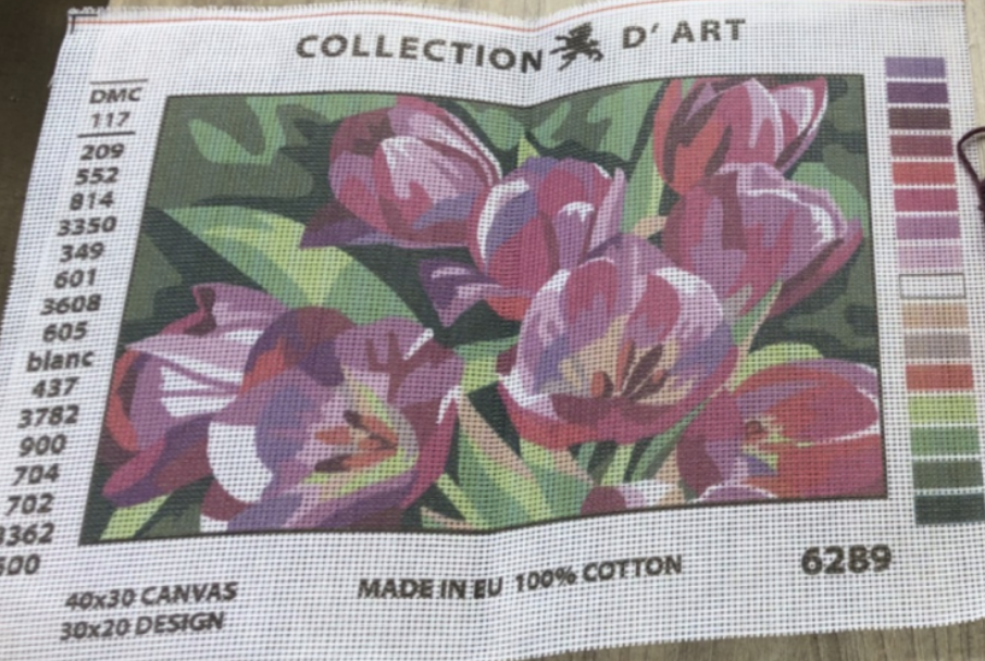 - The printed 14-count canvas, which measures 30cm x 40cm