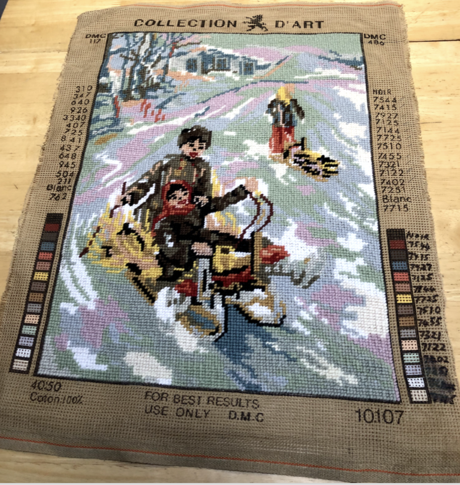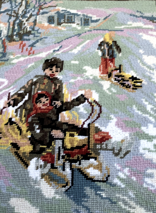 Collection d’art Vintage Tapestry Canvas, Completed- Sledging (50cm x 40cm)