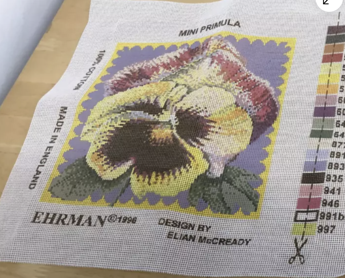 Ehrman Tapestry Kit- Mini Primula  Design by Elian McCready (34cm x 36cm)
