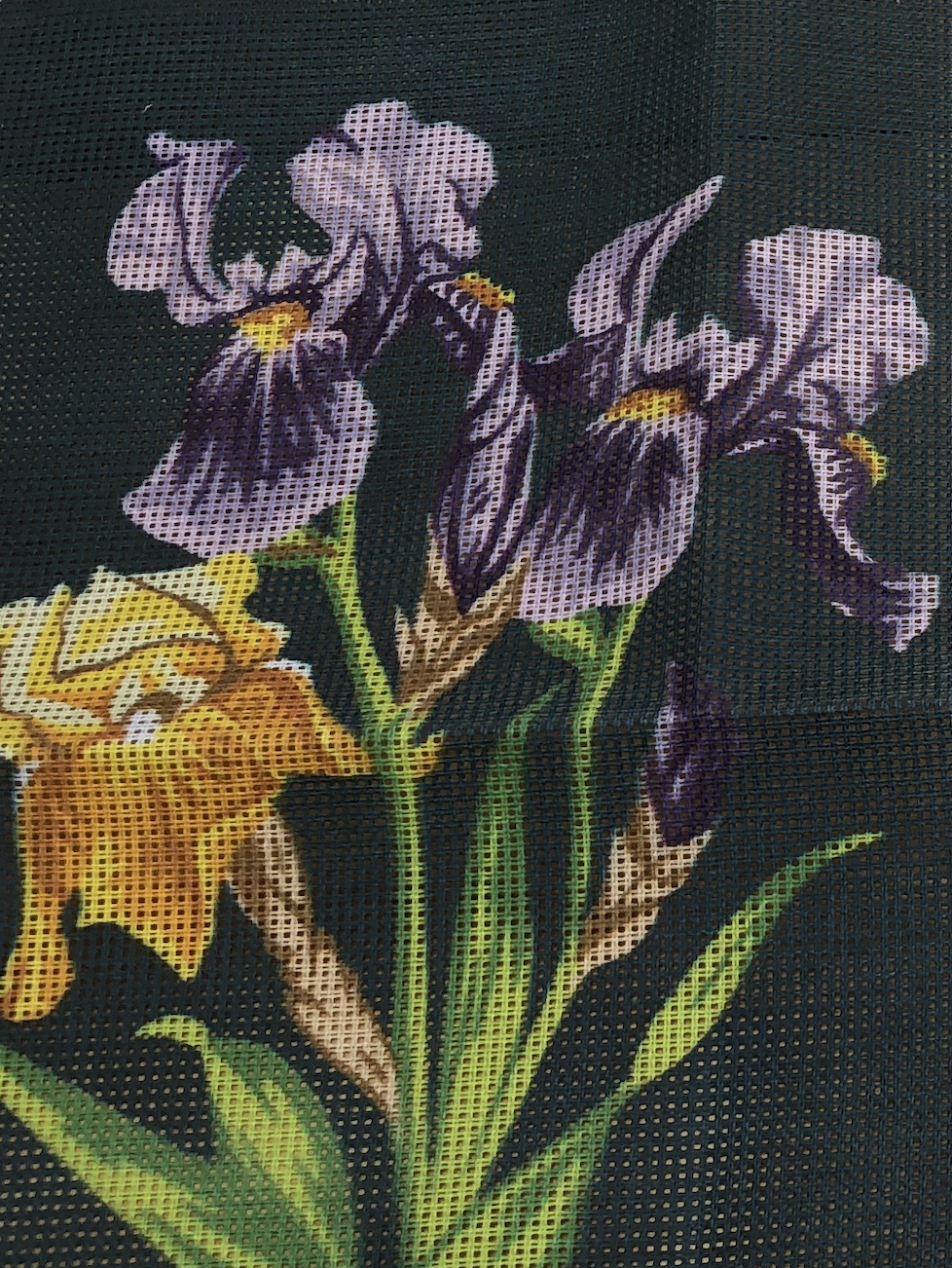 The design is pre-printed in full colour onto 10 hpi canvas which measures approximately 9″ x 12″ (23 x 31cm