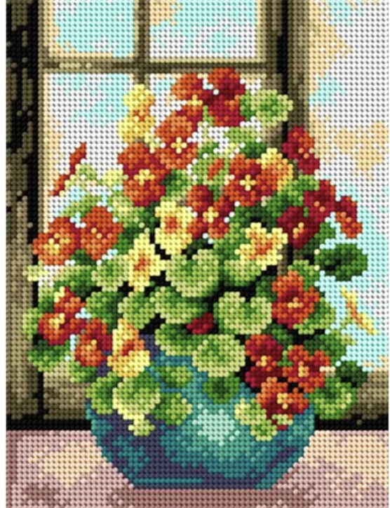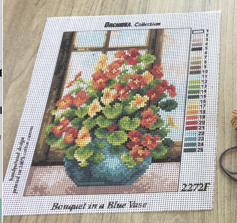 Orchidea Tapestry Kit- Bouquet in a Blue Vase (24cm x18cm)