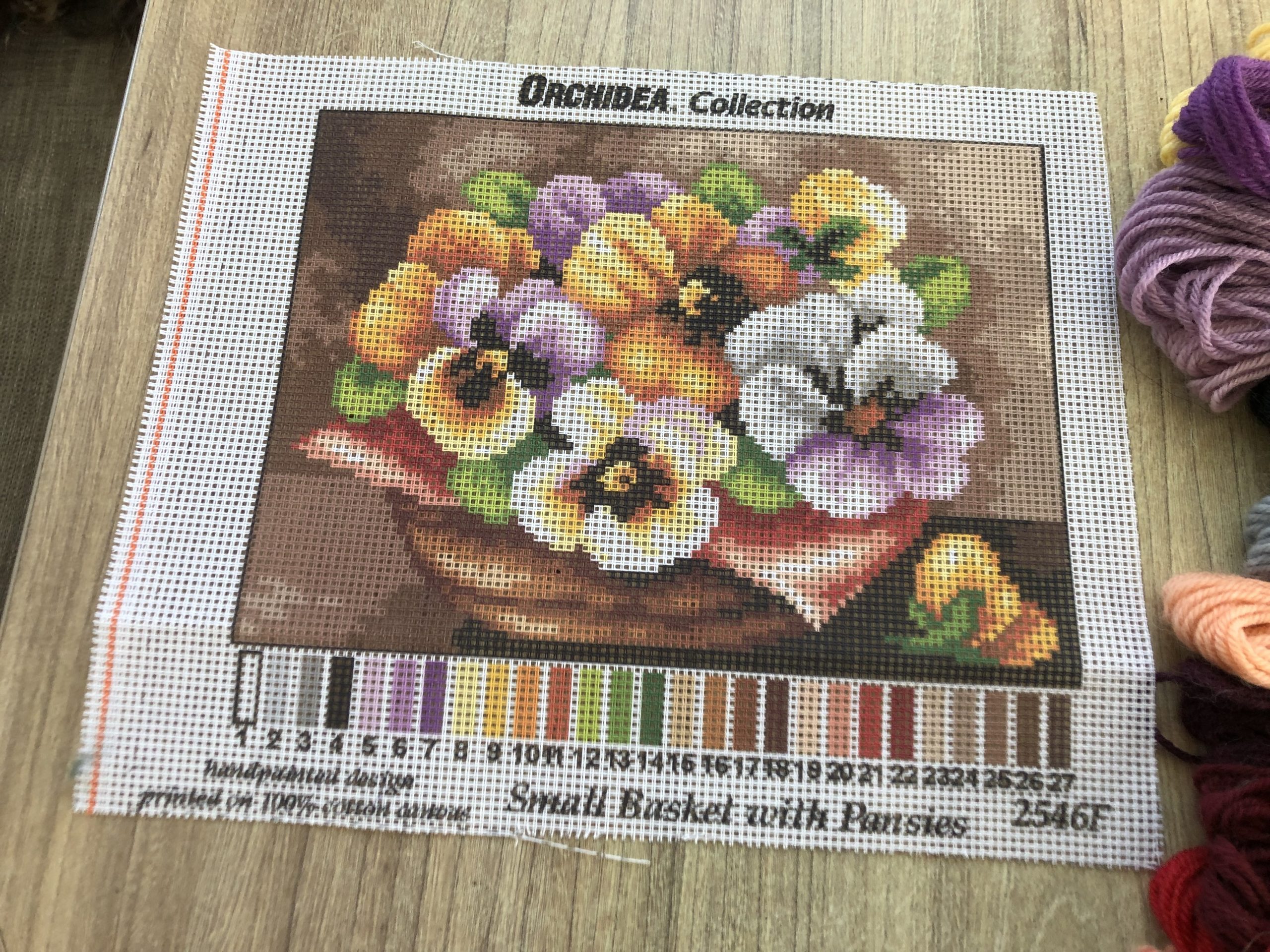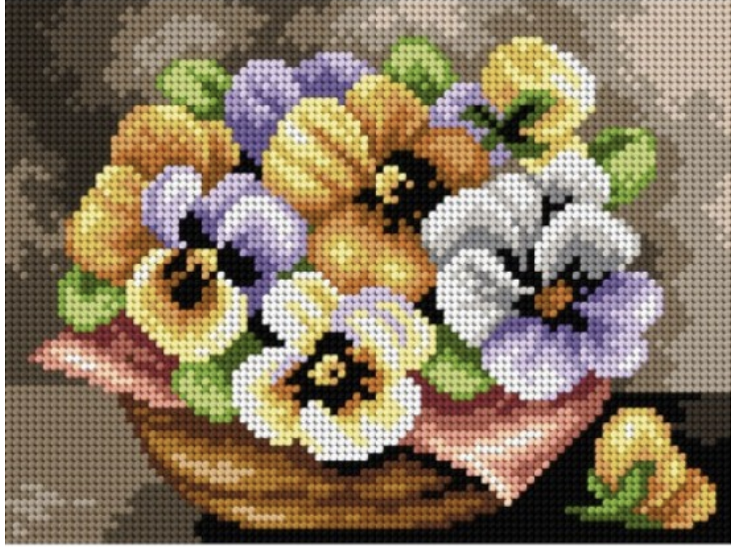Orchidea Tapestry Kit- Small Basket with Pansies (18cm x24cm)