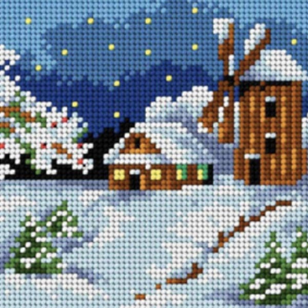 Orchidea Tapestry Kit -Winter Cottage & Windmill (15cm x15cm)