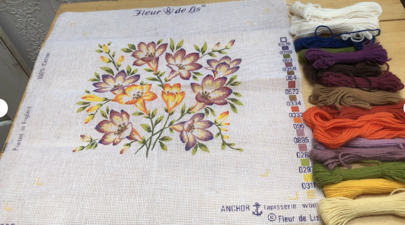 Rare Vintage fleur de lis tapestry Kit- Summer Flowers