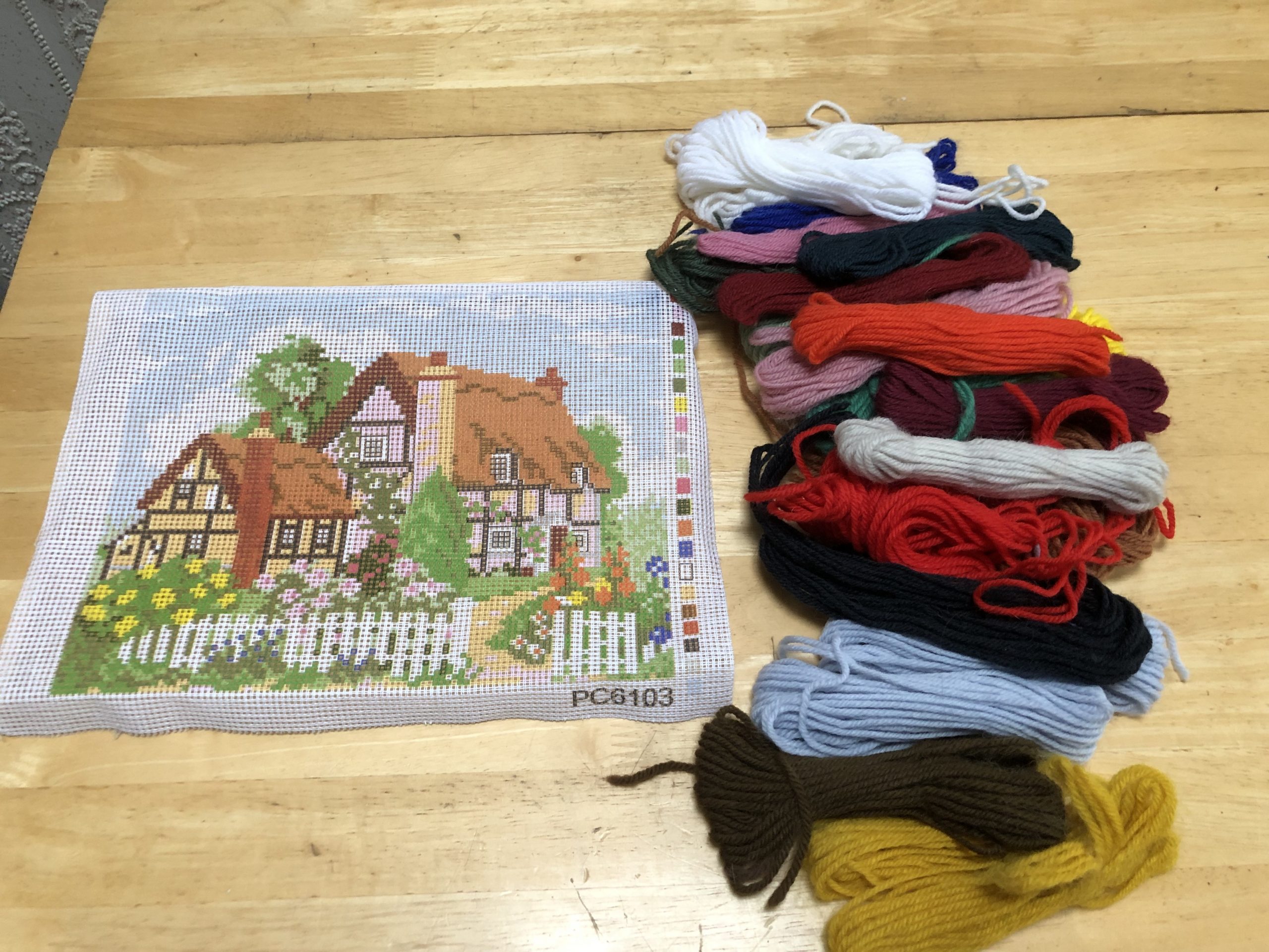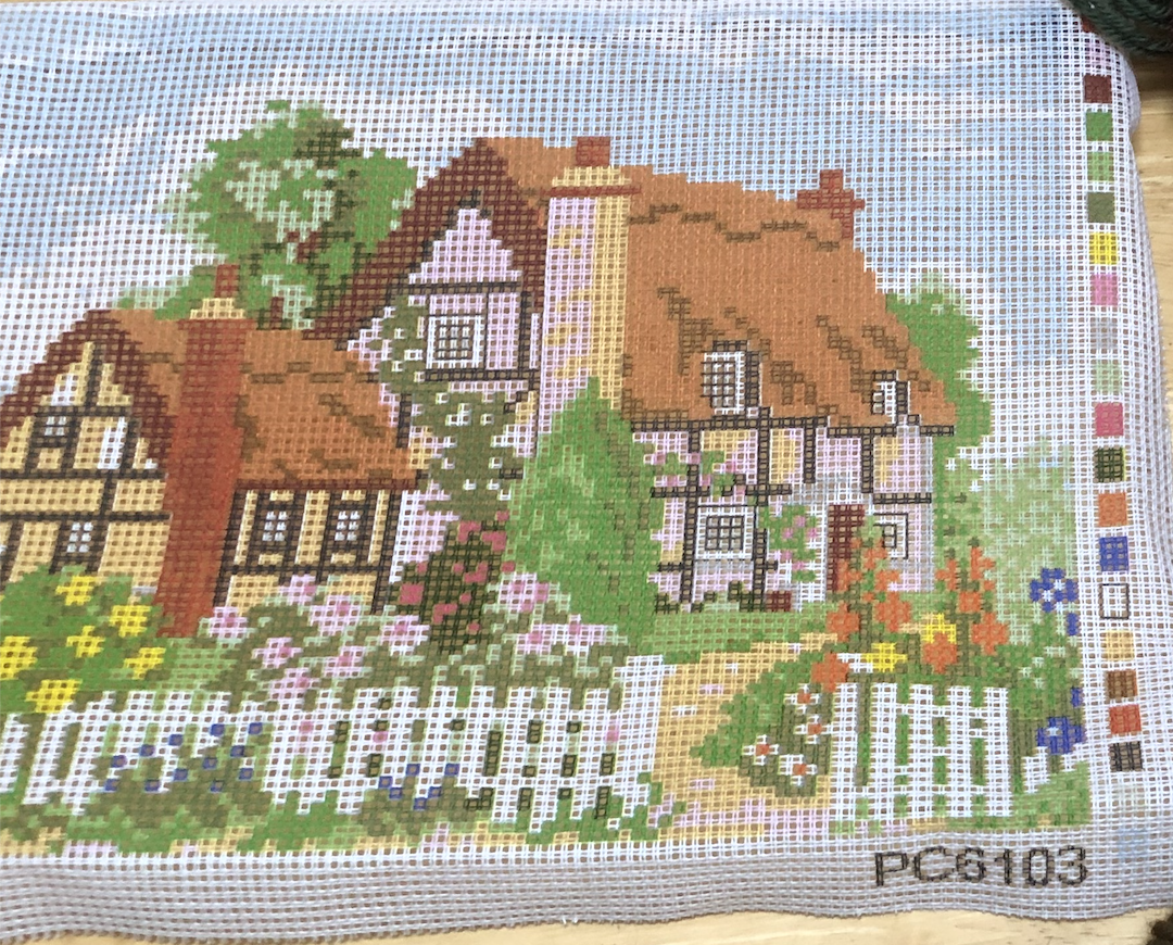 This is a lovely  Tapestry Kit showing a country Cottage.